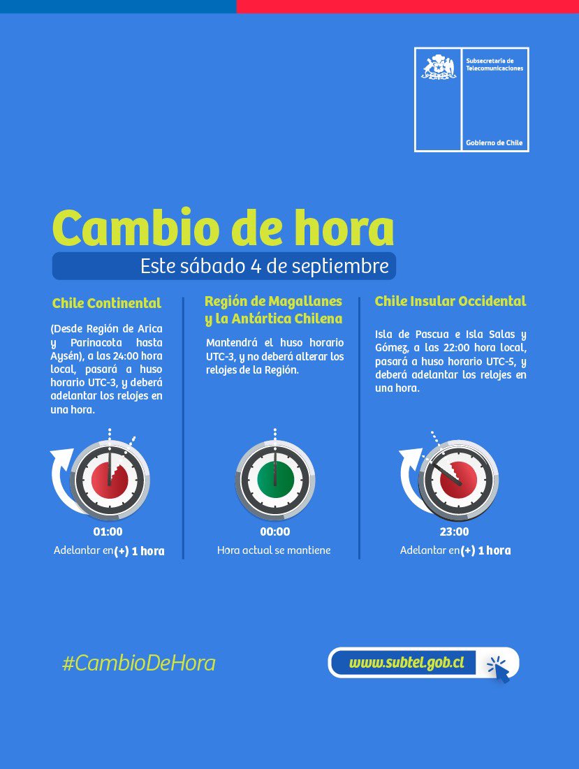 Hora oficial de chile continental. Add an external link to your content for free. Sólo debes activar el servicio presionando Aviso de Cambio o Cambio Automáticoel cambio automático es sólo para usuarios Root de Android. La hora oficial en Chile continental e insular se adelantará 60 minutos.