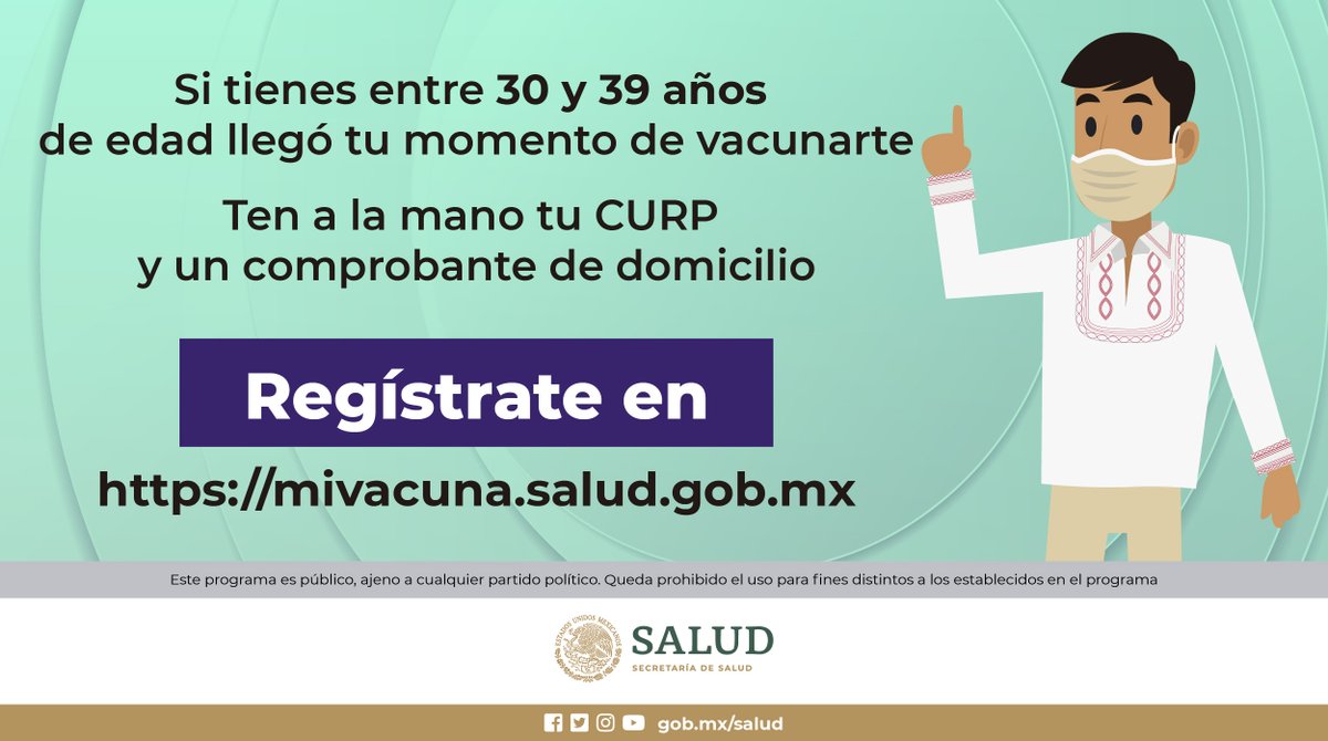 Salud Mexico On Twitter La Vacunacion Contra Covid19 Continua Si Tienes Entre 30 Y 39 Anos De Edad Registrate En Https T Co 6lkeegruef Continua Con Las Medidas De Higiene E Informate En Fuentes